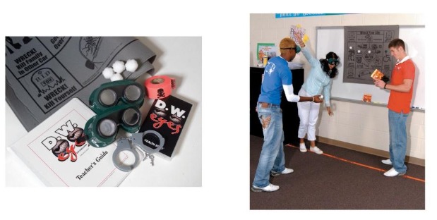 Демонстрационная модель с очками для наглядного показа эффектов алкоголя